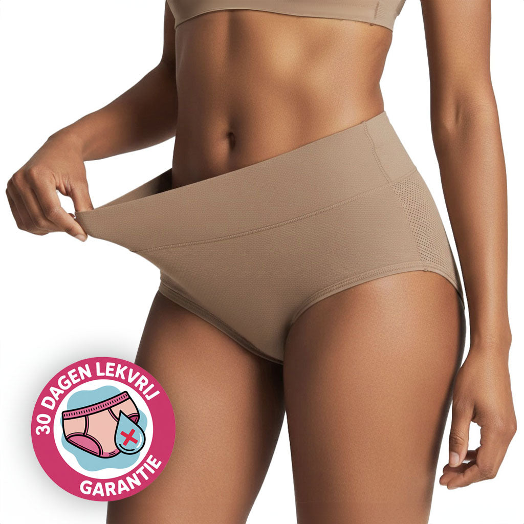 Ons premium absorberende ondergoed biedt volledige bescherming tegen doorlekken, zodat je geen inlegkruisjes meer nodig hebt. Het zachte, ademende materiaal voelt de hele dag comfortabel aan en past zich discreet aan je lichaam aan, waardoor je je vrij en zelfverzekerd kunt bewegen.